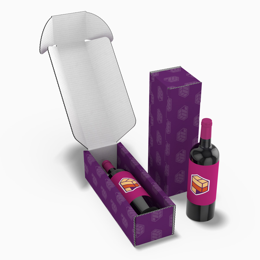 A sturdy mailer box designed to protect wine bottles, made from durable cardboard and fully customisable for gifting or branded presentation.